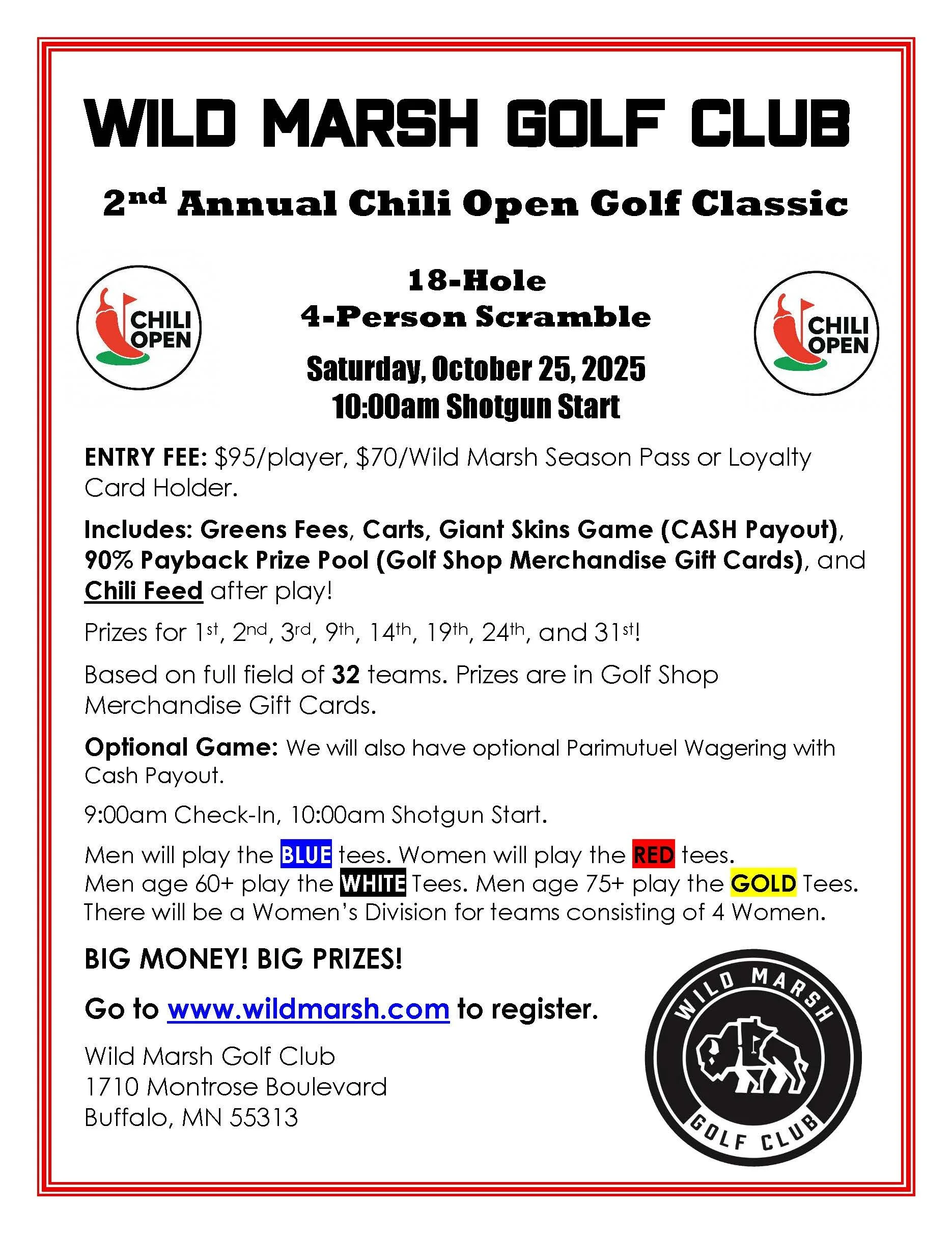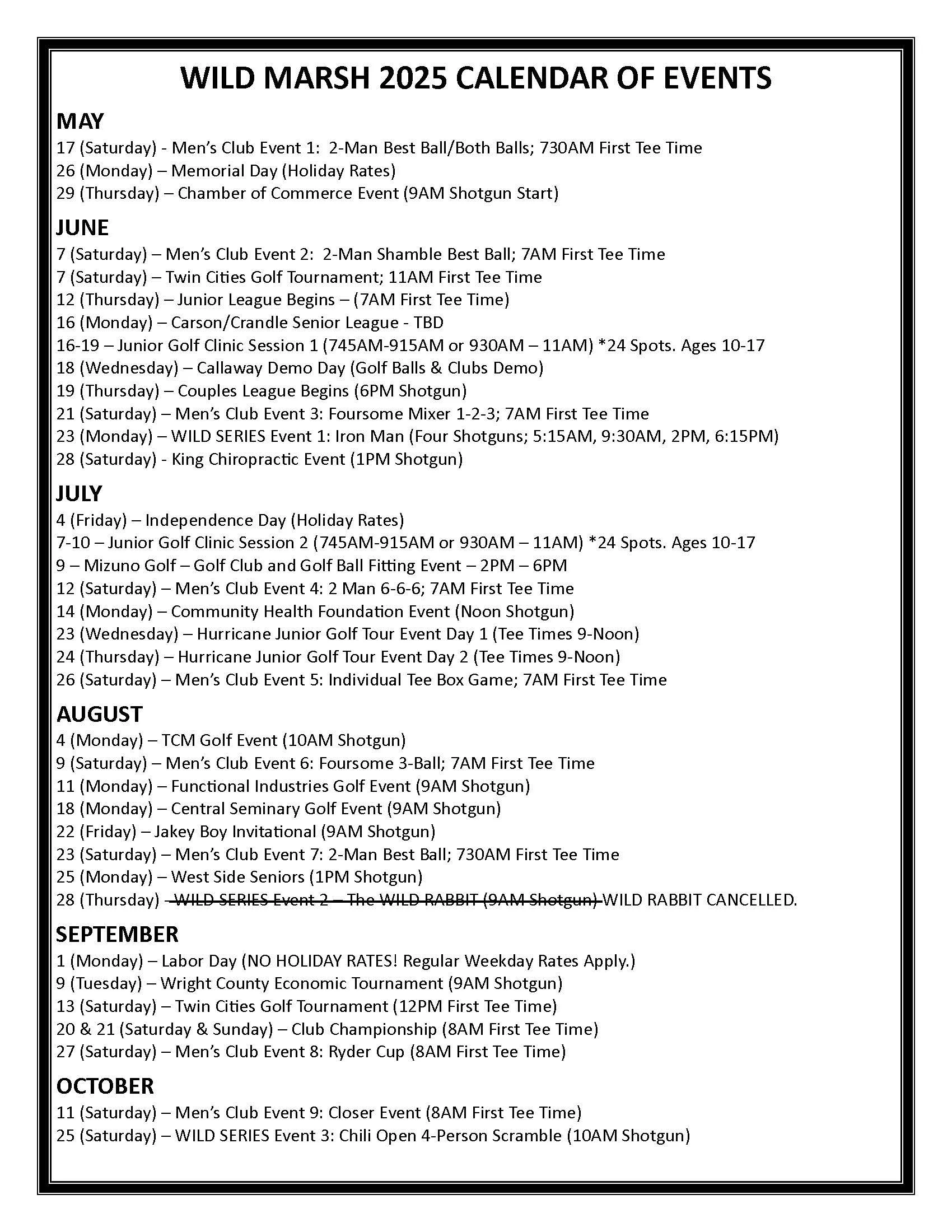 Want to Know What Is Going On At Wild Marsh This Golf Season. Here Is The Current Calendar of Events. *** Event Days May Have Limited Tee Times Available for Season Pass Holders & Loyalty Club Members.