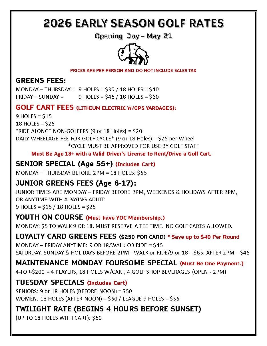 *Due to Insurance & Safety Reasons, Children Ages 5 and Under are Not Permitted on the Golf Course. Juniors 6-12 MUST be accompanied by an adult.